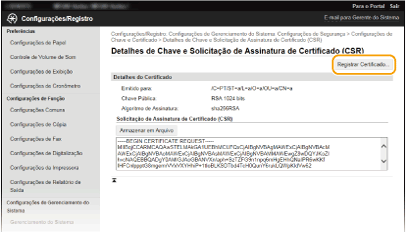 Não pode utilizar o par de chaves gerado pelo Pedido de Assinatura de Certificado (CSR) enquanto o certificado não tiver sido registado. Depois de a autoridade de certificação emitir o certificado digital, registe-o, seguindo o procedimento abaixo.
