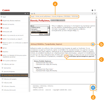 Πατήστε για να εμφανιστούν πληροφορίες σχετικά με το πώς μπορείτε να προβάλλετε το εγχειρίδιο Οδηγός Χρήστη, να πραγματοποιείτε αναζήτηση και άλλες πληροφορίες.