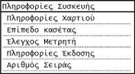 Εμφανίζει το μέγεθος χαρτιού που καθορίζεται σε κάθε προέλευση χαρτιού.