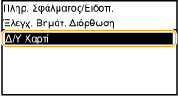 Σε ορισμένες περιπτώσεις, όταν παρουσιάζεται σφάλμα, εμφανίζονται οδηγίες για τον τρόπο αντιμετώπισης του σφάλματος. Ακολουθήστε τις οδηγίες που εμφανίζονται στην οθόνη για να επιλύσετε το πρόβλημα. Παρακάτω απεικονίζεται η οθόνη που εμφανίζεται σε περίπτωση εμπλοκής χαρτιού (