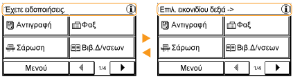 Όταν εμφανίζεται το μήνυμα <Έχετε ειδοποιήσεις.> ή <Επιλ. εικονίδιο δεξιά ->>