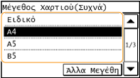 Εάν το μέγεθος του χαρτιού που έχετε τοποθετήσει δεν εμφανίζεται, πατήστε <Άλλα Μεγέθη>.