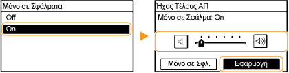 Επιλέξτε <On> (αναπαραγωγή ήχου) ή <Off> (μη αναπαραγωγή ήχου).