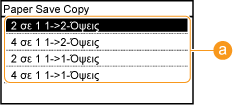 Η ρύθμιση <Paper Save Copy> ενδέχεται να μην είναι διαθέσιμη για ορισμένα μεγέθη και τύπους χαρτιών. Χαρτί