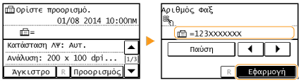Πατήστε <Παύση> για να εισάγεται μια παύση στο τέλος του αριθμού φαξ, όταν είναι απαραίτητο.