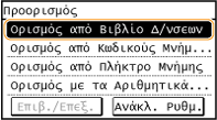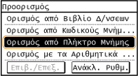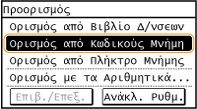 Πατήστε <Ορισμός από Κωδικούς Μνήμης>.