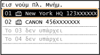 Εμφανίζει όλους τους προορισμούς που είναι καταχωρισμένοι στο βιβλίο διευθύνσεων. Για τις ενδείξεις δίπλα στους προορισμούς, δείτε τις επεξηγήσεις παρακάτω.