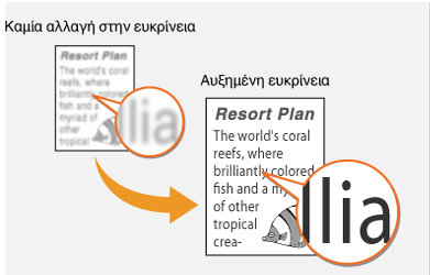 Μπορείτε να προσαρμόσετε την όξυνση της εικόνας πριν την στείλετε. Αυξήστε την όξυνση για να οξύνετε θαμπό κείμενο και θαμπές γραμμές ή μειώστε την όξυνση για να βελτιώσετε την εμφάνιση των φωτογραφιών περιοδικού.