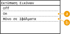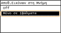 Επιλέξτε <On> ή <Μόνο σε Σφάλματα>