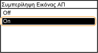 Εάν επιλέξετε <On> ή <Μόνο σε Σφάλματα>, ένα τμήμα του εγγράφου φαξ μπορεί να συμπεριληφθεί στην αναφορά. Ορίστε τη ρύθμιση <Συμπερίληψη Εικόνας ΑΠ> σε <On>.
