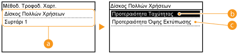 Χαρτί), εφαρμόζεται η ρύθμιση <Προτεραιότητα Ταχύτητας>. Σε αυτή την περίπτωση, πρέπει να τοποθετήσετε χαρτί με τον ίδιο τρόπο όπως όταν επιλέγεται η ρύθμιση <Προτεραιότητα Ταχύτητας> (