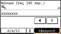 Εισαγάγετε το κείμενο χρησιμοποιώντας τα αριθμητικά πλήκτρα και πατήστε <Εφαρμογή>.