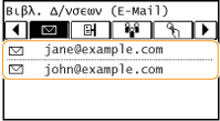 Για αποστολή email απευθείας από τη συσκευή, μπορείτε να ολοκληρώσετε τις προετοιμασίες, όπως τον προσδιορισμό των ρυθμίσεων διακομιστή αλληλογραφίας, εκ των προτέρων. Διαμόρφωση ρυθμίσεων σάρωσης (Αποστολή e-mail)