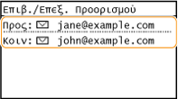 Μπορείτε να επιλέξετε έναν προορισμό από τους τρεις τελευταίους προορισμούς. Όταν καθορίζετε έναν προορισμό που είχε χρησιμοποιηθεί προηγουμένως, η συσκευή ορίζει τις ίδιες ρυθμίσεις σάρωσης, όπως την πυκνότητα, που είχαν χρησιμοποιηθεί την τελευταία φορά που αποστείλατε έγγραφα σε εκείνον τον προορισμό.