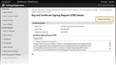 Για να μπορέσετε να χρησιμοποιήσετε το ζεύγος κλειδιών που έχει δημιουργηθεί με το αίτημα υπογραφής πιστοποιητικού (CSR), πρέπει να καταχωρήσετε πρώτα το πιστοποιητικό. Αφού εκδοθεί το ψηφιακό πιστοποιητικό από τη σχετική αρχή πιστοποίησης, καταχωρήστε το ακολουθώντας την παρακάτω διαδικασία.