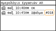 Εάν η εκτύπωση δεν ολοκληρωθεί με επιτυχία, δεν μπορείτε να στείλετε ή να λάβετε ένα φαξ ή ένα σαρωμένο έγγραφο ή παρουσιαστεί κάποιο άλλο σφάλμα, αυτό το σφάλμα εμφανίζεται σε μια αναφορά ή ένα μήνυμα στην οθόνη <Έλεγχος Κατάστασης> ως τριψήφιος αριθμός (κωδικός σφάλματος). Ελέγξτε τα ακόλουθα για να βρείτε αιτίες και λύσεις για κάθε κωδικό σφάλματος. Για να μάθετε τον τρόπο εκτύπωσης μιας αναφοράς σφάλματος και των πληροφοριών στην αναφορά, ανατρέξτε στην ενότητα