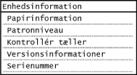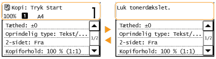Viser maskinens status, f.eks. papirstørrelsen eller den resterende mængde toner i tonerpatronerne.