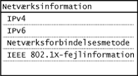 Viser netværksindstillinger som f.eks. maskinens IP-adresse og status såsom tilstanden for trådløs LAN-kommunikation.
