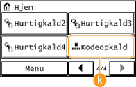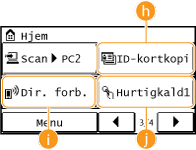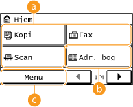 <Hjem>-skærmen vises, når der er tændt for strømmen, eller ved at trykke på