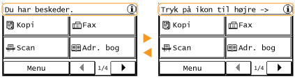 Når <Du har beskeder.> eller <Tryk på ikon til højre ->> vises