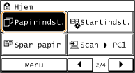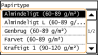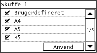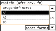 Umarkerede papirformater vises på skærmen <Pap.form. (andre fm.)>.