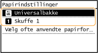 Tryk på <Universalbakke> eller <Skuffe 1>.
