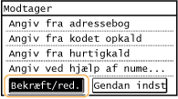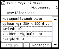 <Ja>.Hvis du har angivet gruppeopkald i trin 2, vises "XX modtager(e)". Hvis du trykker på Antal modtagere, vises destinationer, der er registreret i gruppen.