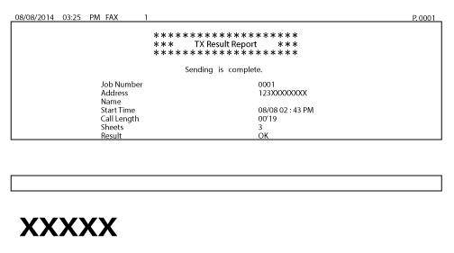 "OK" indikerer, at afsendelsen blev gennemført, mens "NG" og tre cifre (en fejlkode) indikerer, at afsendelsen mislykkedes (