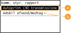 Tryk på <Til> for at udskrive sendte og modtagne rapporter separat eller <Fra> for at udskrive rapporter på ét ark.