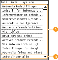 ![]() Hvis indstillinger for Brugerinterface til fjernbetjening initialiseres
