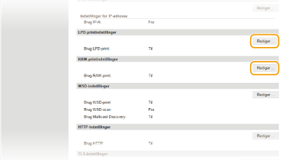 Klik på [Rediger] i [LPD-printindstillinger] eller [RAW-printindstillinger].