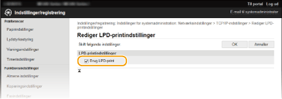 Marker afkrydsningsfeltet for at udskrive via LPD. Hvis du ikke bruger LPD-udskrivning, skal du fjerne markeringen i afkrydsningsfeltet. [Brug RAW-print]