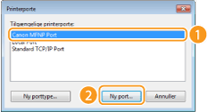 Vælg [Canon MFNP-port] for [Tilgængelige porttyper], og klik på [Ny port].