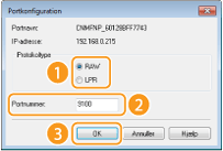 Klik på alternativknappen [LPR] eller [RAW] i [Protokoltype], skift nummeret i [Portnummer] efter behov, og klik derefter på [OK].