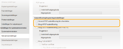 For at bruge POP3-serveren til godkendelse for autentificering før du sender e-mail eller skal du markere afkrydsningsfeltet.