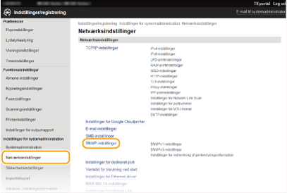 Med SNMP kan printeradministrationsoplysningerne, f.eks. udskrivningsprotokoller og printerporte, overvåges og hentes regelmæssigt fra en computer på netværket.