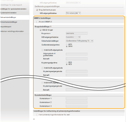 Med SNMPv3 kan du implementere styring af netværksenheder, der beskyttes af robuste sikkerhedsfunktioner. Bemærk, at TLS skal være aktiveret for Brugerinterface til fjernbetjening, før du konfigurerer SNMPv3 (