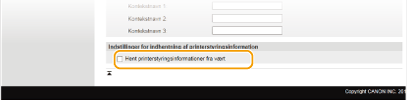Angiv indstillinger for hentning af printeradministrationsoplysninger.