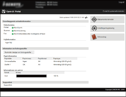 Du kan foretage alle handlingerne og indstillingerne i Brugerinterface til fjernbetjening. Angiv den relevante pinkode i [Systemadministrator-PIN] (