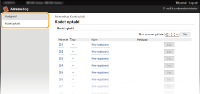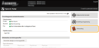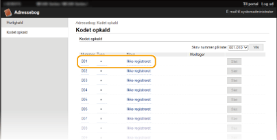Registrering af adressebog fra Brugerinterface til fjernbetjening