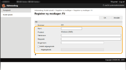 Du kan registrere eller redigere maskinens adressebog ved at bruge computeren. Angiv den delte mappedestination her.
