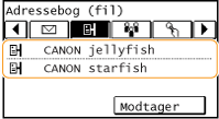 Konfiguration af maskinen til scanning til delte mapper Tilgængelige destinationer for delte mapper er begrænset til de destinationer, der er registreret i adressebogen. Hvis du vil angive en destination ved hjælp af adressebogen, er det nødvendigt at registrere destinationerne for de fælles mapper på forhånd.