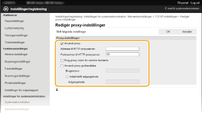 Markér afkrydsningsfeltet for at bruge den angivne proxyserver, når der skal kommunikeres med en HTTP-server.