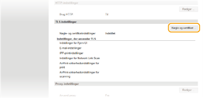 Brug af kontrolpaneletDu kan også aktivere eller deaktivere TLS-krypteret kommunikation fra <Menu> på <Hjem>-skærmen. Brug TLS