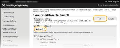 Markér afkrydsningsfeltet [Brug TLS], og klik på [OK].