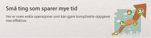 Dra nytte av snarveistastene på betjeningspanelet, slik at du slipper å konfigurere de samme stillingene på nytt hver gang. Du kan bruke knappen <Papirspar.> til å spare papir ved at du kan kopiere to eller fire sider på ett ark. Hvis du bruker en maskin som støtter 2-sidig utskrift, kan du også kopiere på begge sider av arket. For skanning bruker du knappene <Scan -> PC1> / <Scan -> PC2> til å forhåndsinnstille lagringsmålene, skannetypene og filformatene du bruker oftest. Du plasserer bare dokumentet og trykker på en av disse snarveistastene for å skanne.