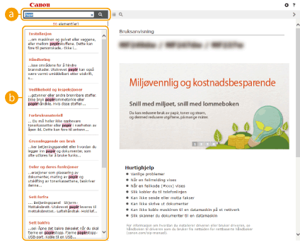 Klikk for å vise informasjon om hvordan du viser Bruksanvisning, hvordan du søker og annen informasjon.