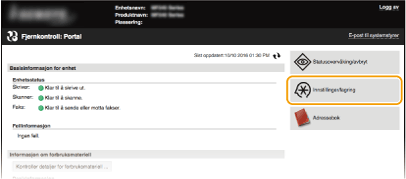 Du kan registrere informasjon, inkludert navnet på maskinen og installasjonsstedet, som brukes for å identifisere maskinen. Du kan også deaktivere AirPrint-funksjonen til maskinen. Bruk Fjernkontroll til å endre disse innstillingene.