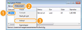 Avbryte fra FjernkontrollDu kan avbryte utskriften fra siden [Jobbstatus] i Fjernkontroll: Kontrollere gjeldende status for utskriftsdokumenter