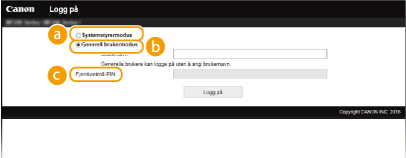 Angi PIN-kode for systemstyrer). Hvis [Systemstyrer-PIN] ikke er angitt, trenger du ikke angi noe.